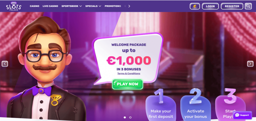 El bono de bienvenida en SlotsPalace casino ES ofrece 3 posibles opciones para los nuevos jugadores. Ya sea que el usuario desee recibir una oferta para el casino, una para deportes o una oferta criptográfica.