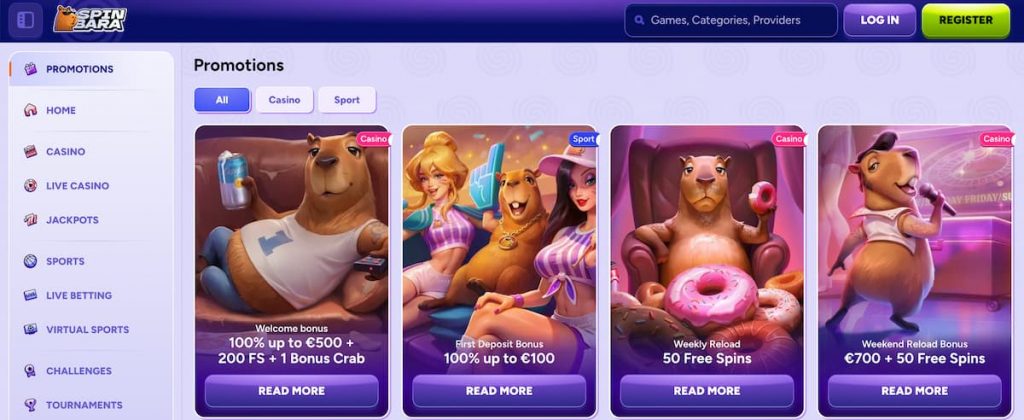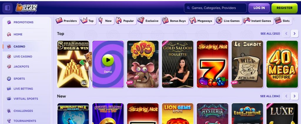Spinbara casino online ofrece 34.000+ títulos disponibles para los fanáticos de los juegos de azar. Estilos abarcan las categorías más populares en todo casino online, incluyendo póquer en línea, las mejores tragaperras y otros juegos de cartas como blackjack y baccarat. También ofrece juegos instantáneos como Aviator y la clásica ruleta que puede encontrarse en su versión tradicional y en vivo.