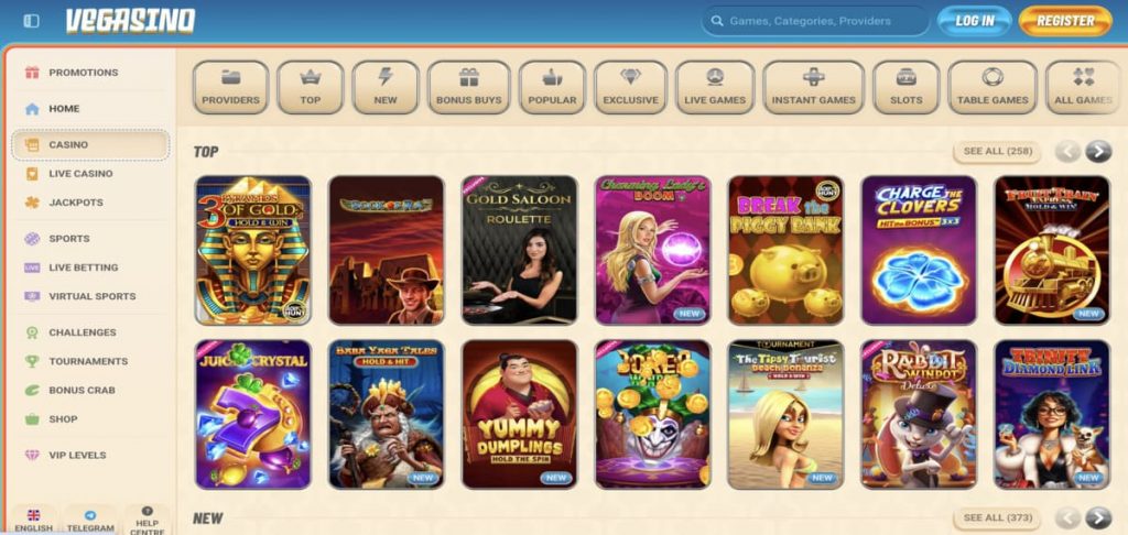 Vegasino casino ofrece un catálogo de juegos con 31.000+ títulos disponibles que incluyen diferentes categorías de juegos. El póquer en línea, las tragaperras y los juegos de mesa son algunas de las opciones con mayor popularidad entre los usuarios españoles. Además, el casino colabora con 120+ proveedores de software que proporcionan los títulos más populares y con mejores reseñas del mercado por su juego justo.